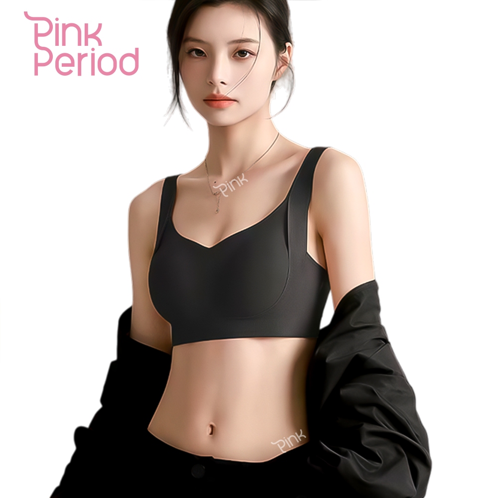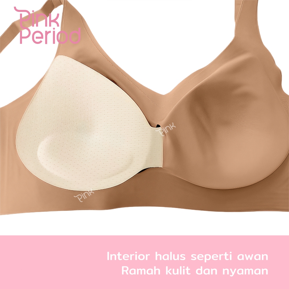 Pink Period Bra Wanita Full Cup Tanpa Kawat Zero Feel Sport Bra Push Up Seamless BH Big Size