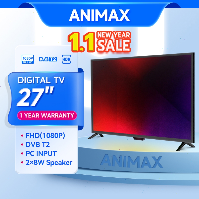 Animax Smart TV Android 27 30 Inch Digital TV LED DVB-T2 Youtube Wifi Monitor PC-AV