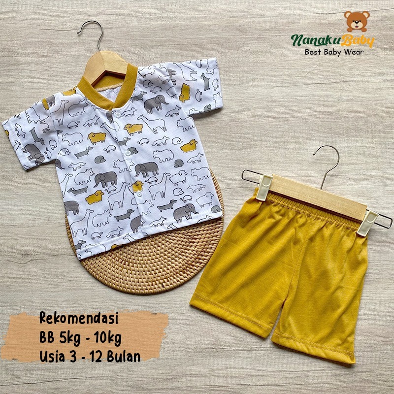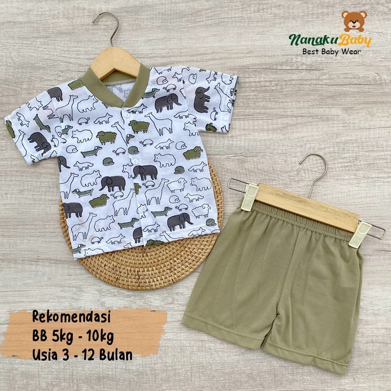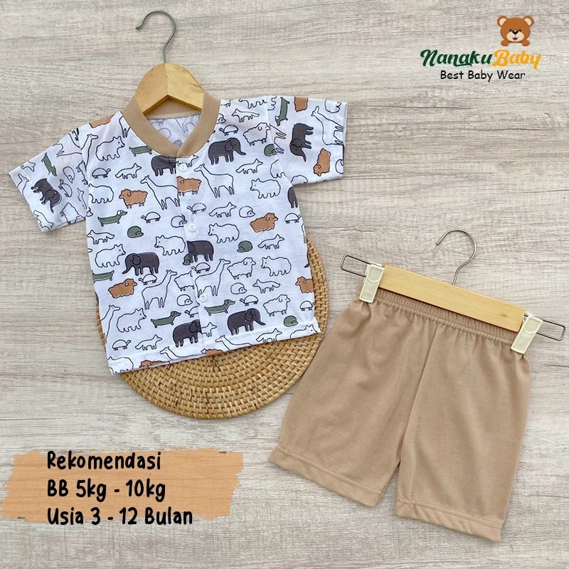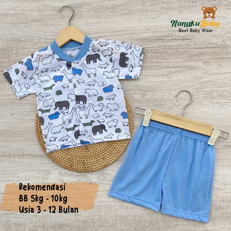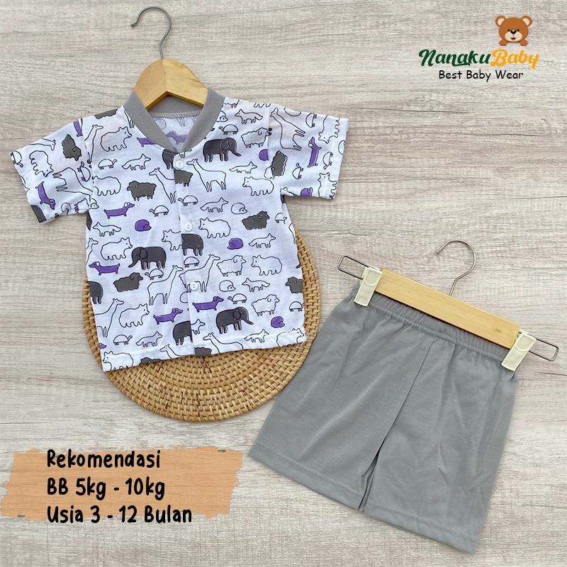 Nanaku Baby - Setelan Baju Bayi Piyama Bayi Lengan Pendek Kancing Depan Usia 3-12 Bulan Motif Hewan