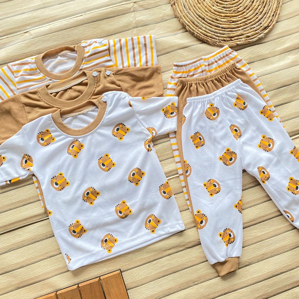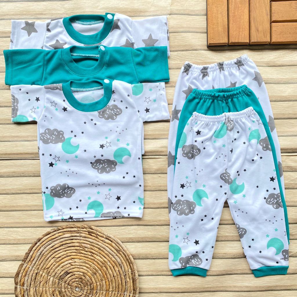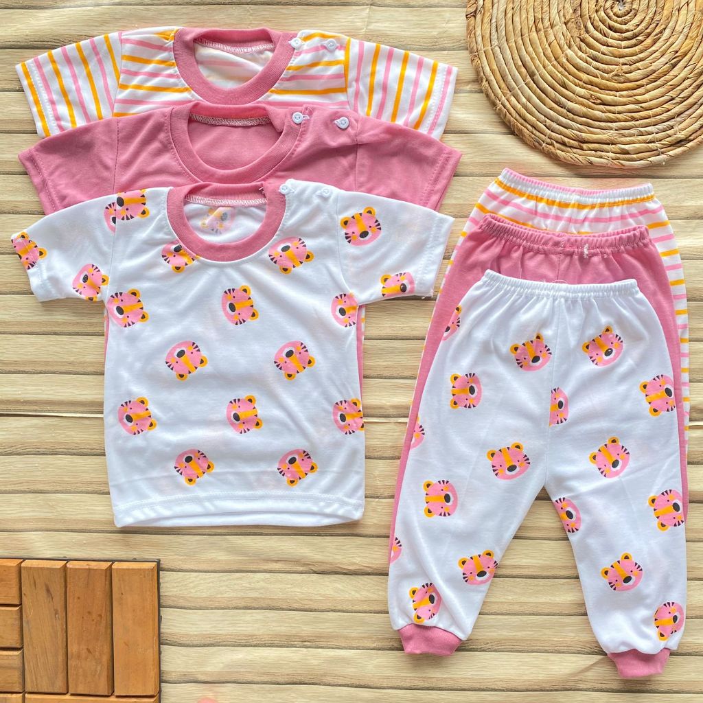 Setelan Bayi Perempuan Usia 3-12 Bulan Isi 3 Pcs Setelan Bayi Newbroan Seris Pink Setelan Bayi Lengan Pendek Celana Panj