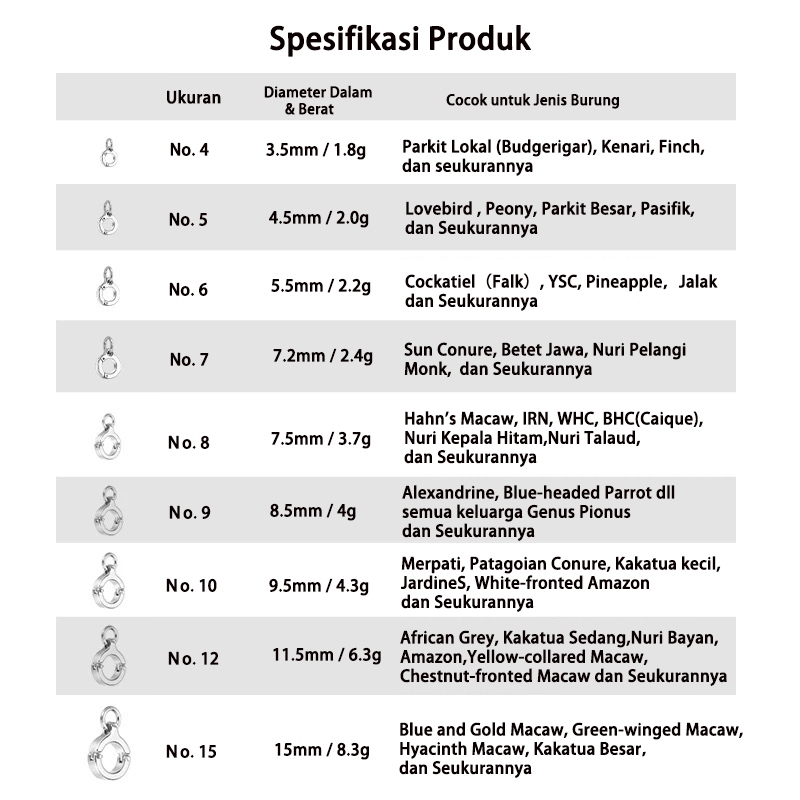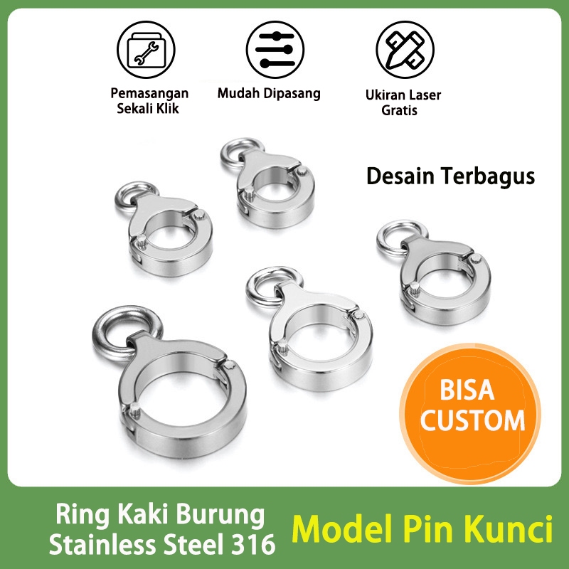 Ring Burung Ring Borgol Bahan Stainless Steel 316 Cincin Kaki Burung Parrot-Free Ukir Laser-PIN