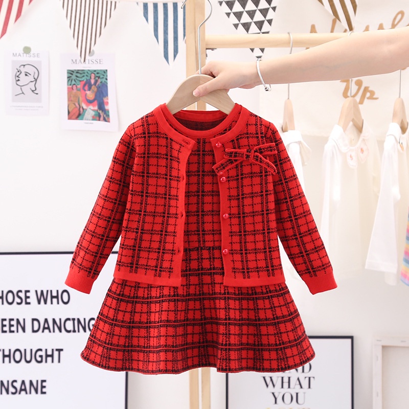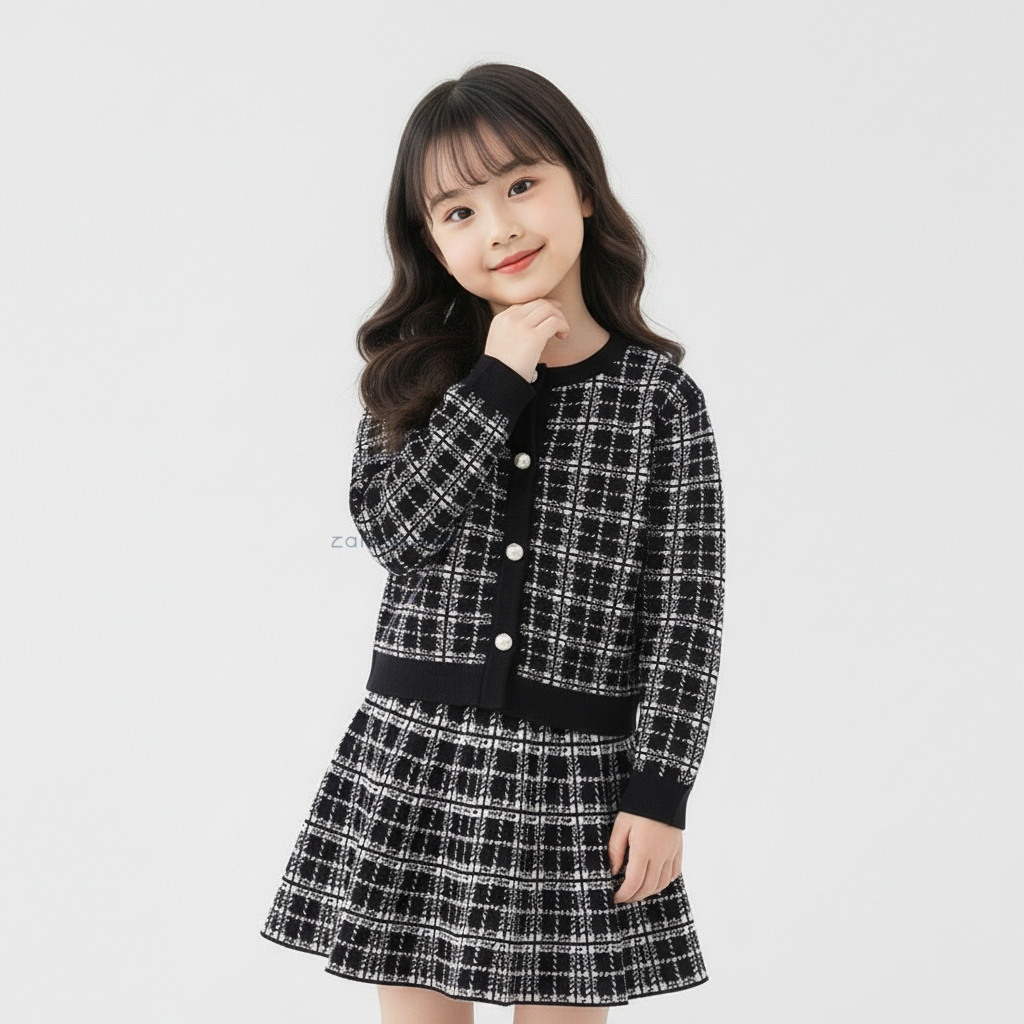 Zahra - Setelan Baju Anak Perempuan Tartan Kids | Cardigan Dress One set Anak Rajut Premium Umur 1 - 6 Tahun