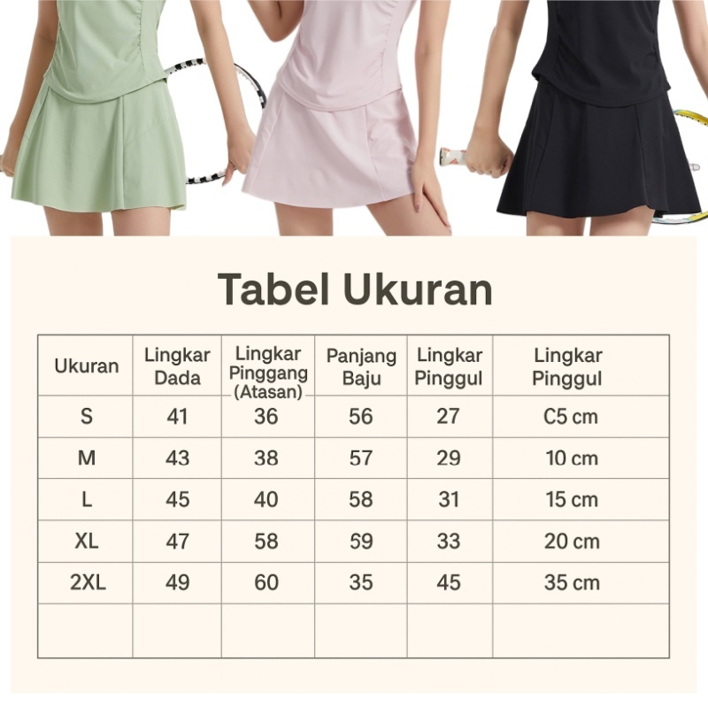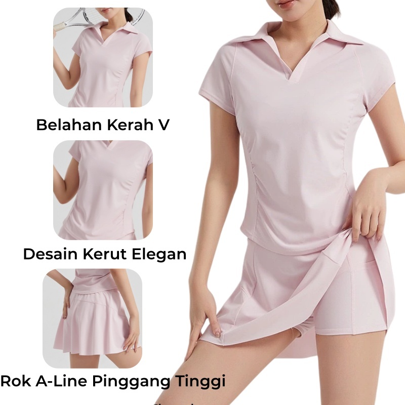 Setelan Padel Tennis Wanita Polo Shirt + Rok Celana Olahraga (S-2XL) Nyaman & Stylish