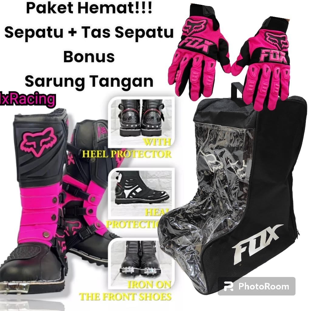 bisa paket hemat sepatu cross trail ujung besi plus tas jingjing buat sepatu bonus sarung tangan boots fx