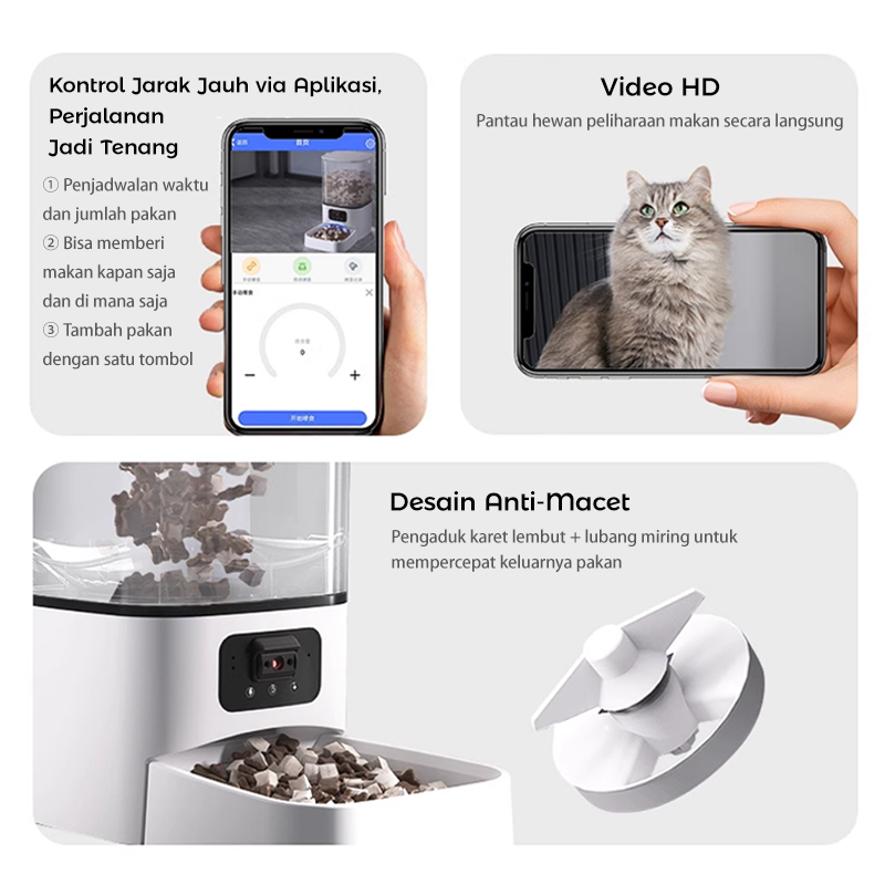 6L Smart Pet Feeder Automatic Dispenser Makanan Kucing Otomatis WiFi APP Connect Pengumpan Cerdas Hewan Night vision Vid