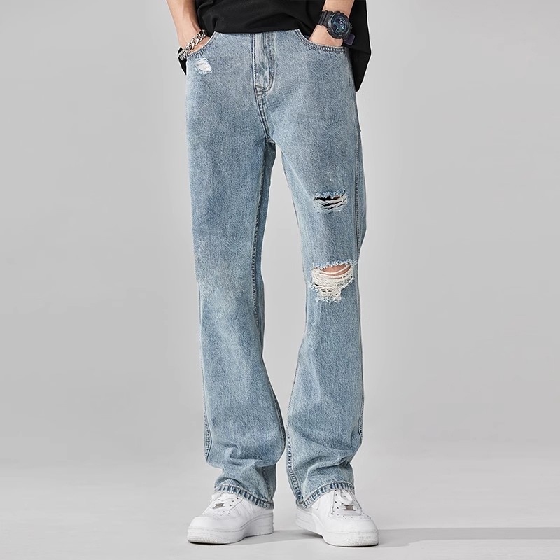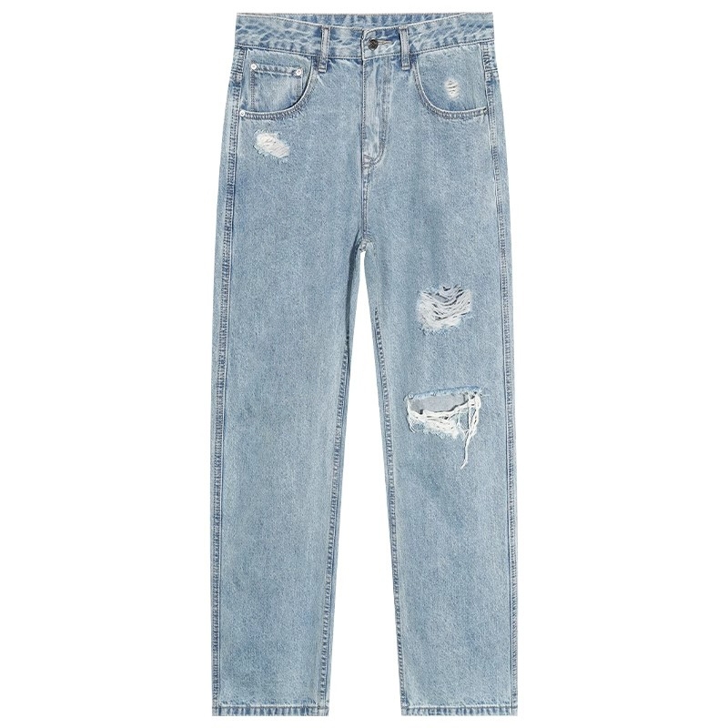 KeyBoy celana jeans pria panjang sobek baggy straight hitam denim pants casual longgar pants korean style