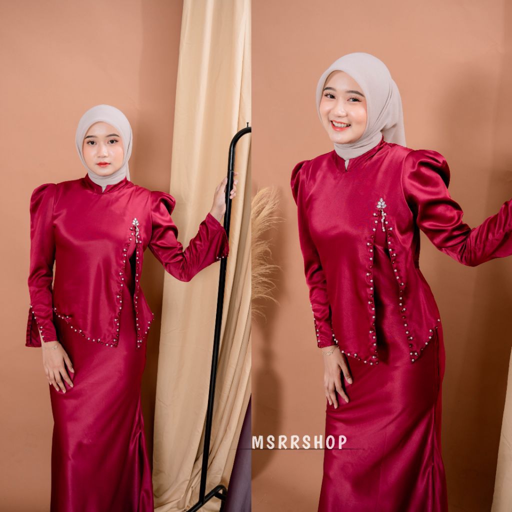 Aveline Dress Satin Silk Premium Wanita Kondangan Muslim Body Fit Gamis Simpel Elegan Full Payet