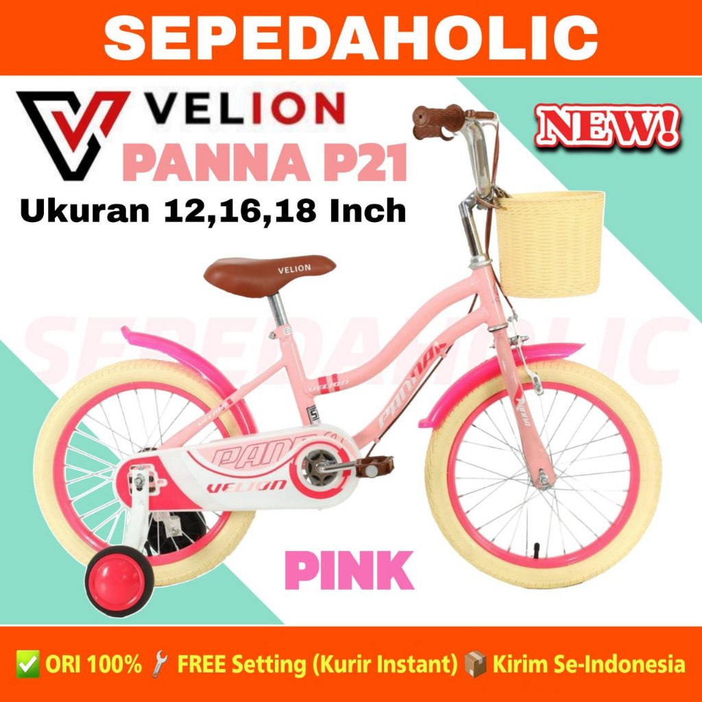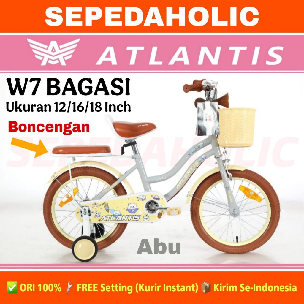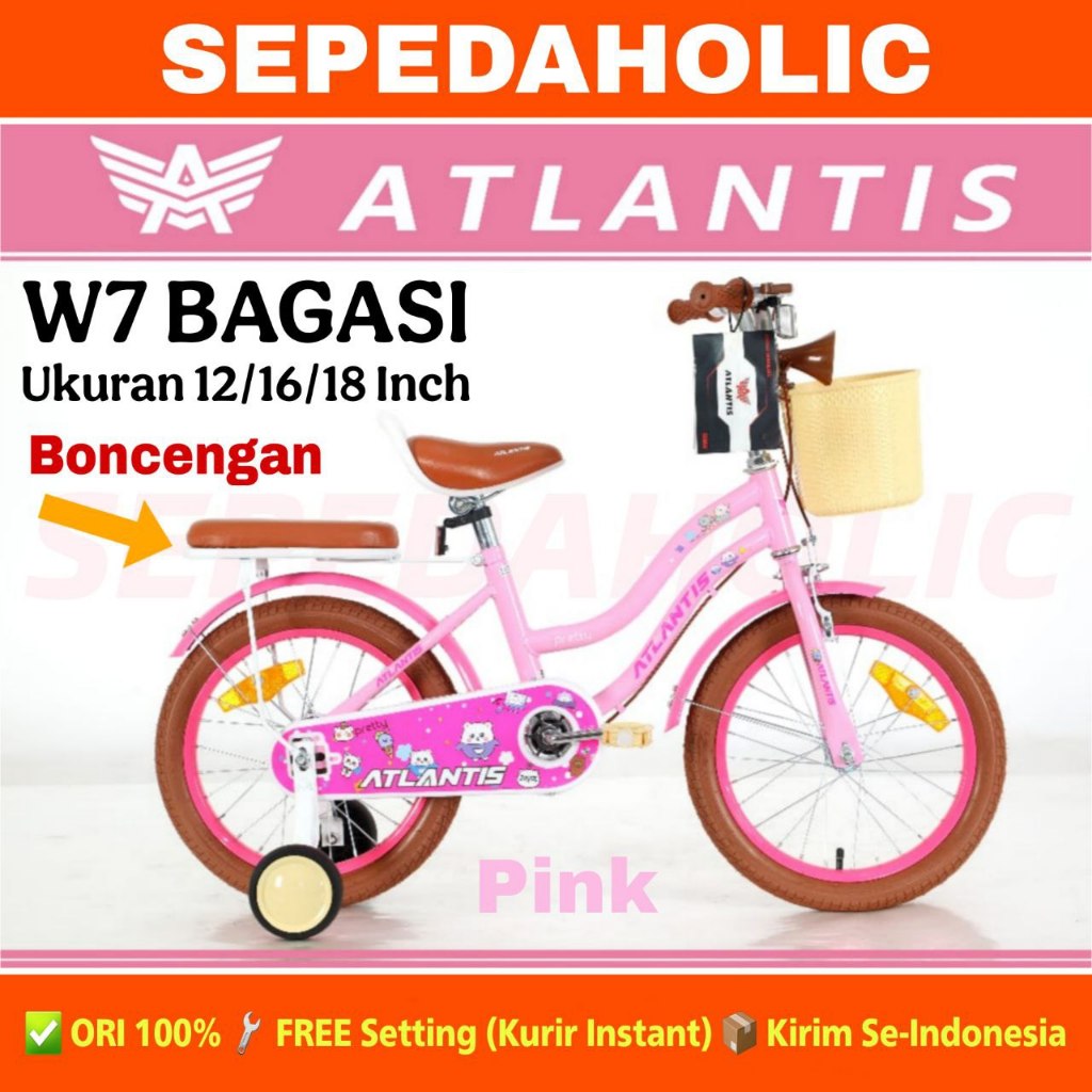 Sepeda Anak Perempuan ATLANTIS MINI W7 WT BAGASI / PANNA P21 Keranjang Ukuran 12 16 18 Inch Usia 2-8 Tahun