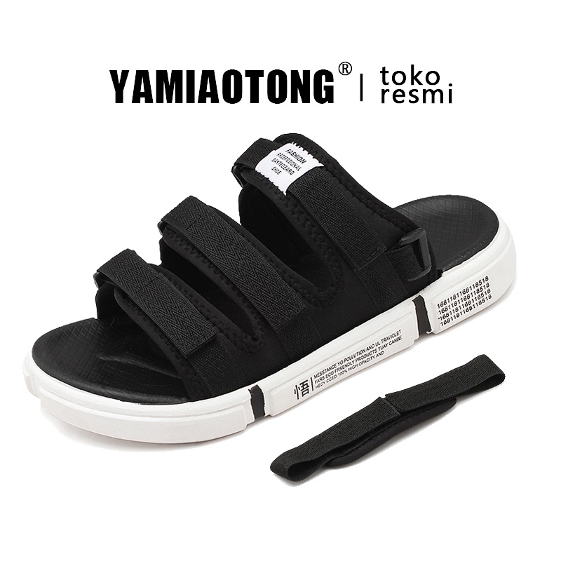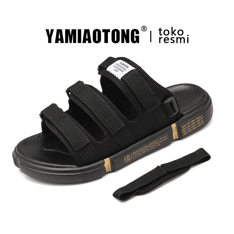 YAMIAOTONG-Sendal Pria - Tali Yang Bisa Dilepas - Sendal Gunung Pria - Hitam/Emas/Putih - 3946