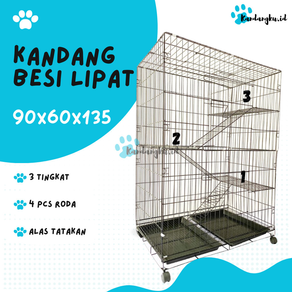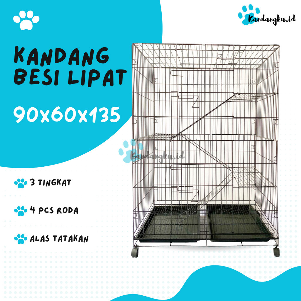 kandang besi lipat ukuran 135x90x60 + roda / kandang extra jumbo kandang kucing kelinci anjing - Kandangku.id