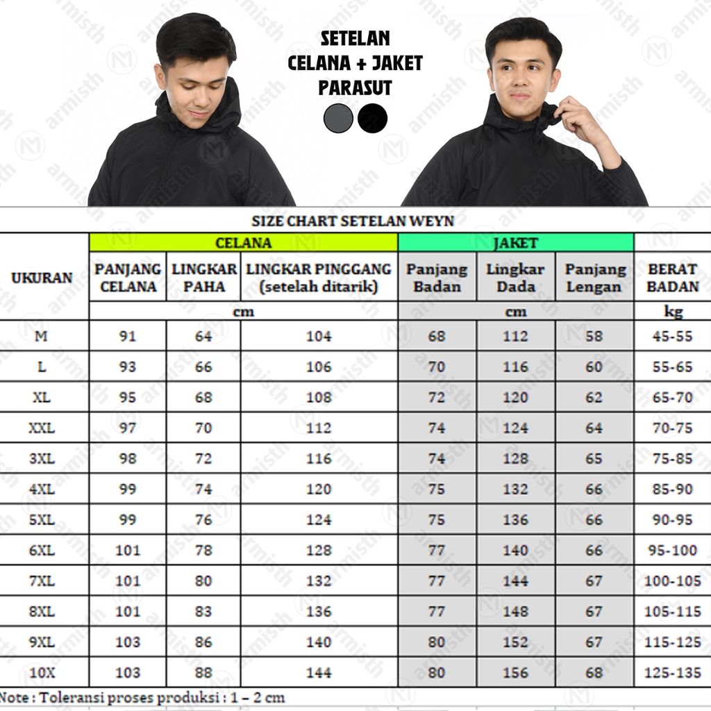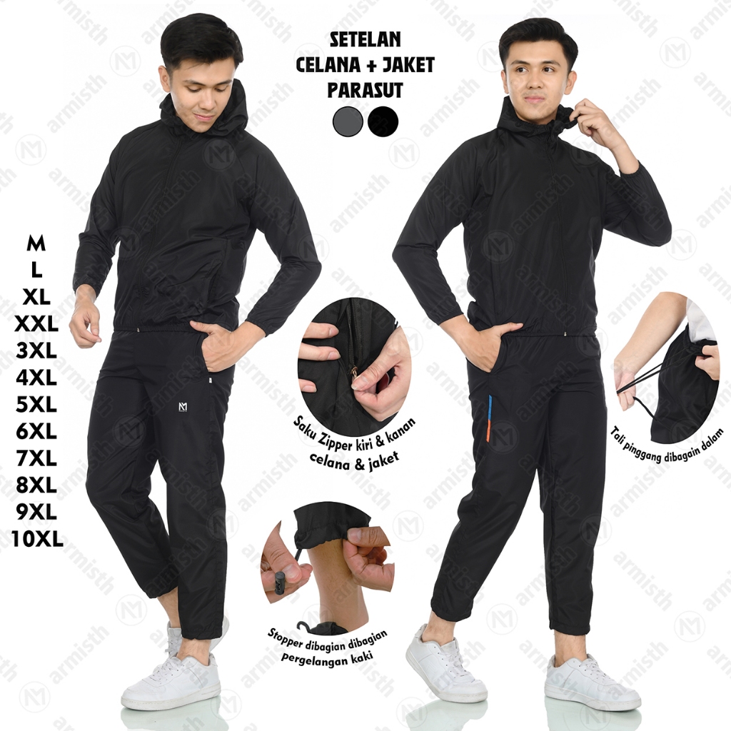 Armisth - Setelan Olahraga Parasut Pria Sauna Premium Jaket & Celana Standar dan Super Jumbo