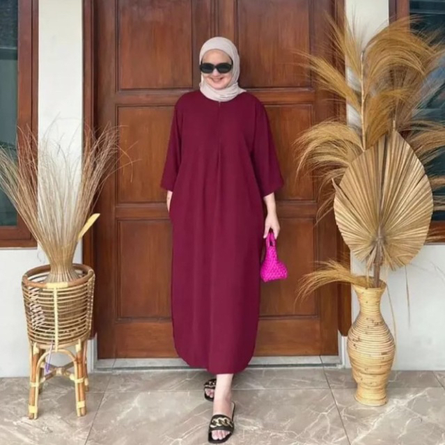 3Pcs Daster Gamis Cringkle Airflow Ld 120cm Pb 125cm Lengan 3/4 By Merpaticollection