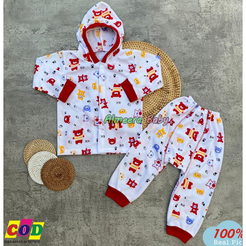 Setelan Baju Bayi Piyama Bayi Lengan Panjang Kancing Depan Setelan Cindung Bear Usia 3-12 Bulan Almeera Baby and Kids