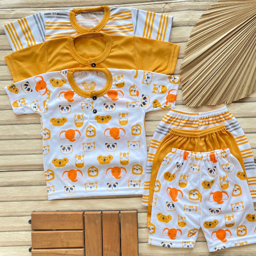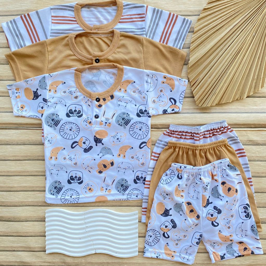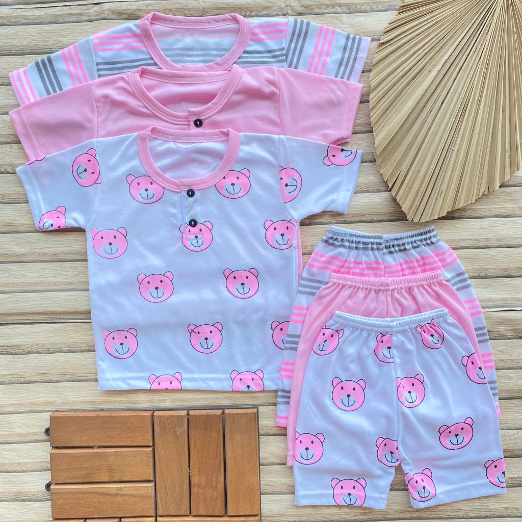isi 3 Pcs Setelan Bayi Usia 3-12 Bulan Lengan Pendek Celana Pendek Kancing Depan Bayi Laki Laki Perempuan Baju Bayi Hari