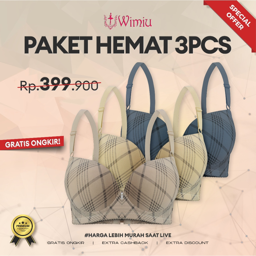 WIMIU PAKET HEMAT 3 PCS Bra Wanita Pakaian Dalam Wanita Perempuan Bra Kawat Bra Busa Sedang Beha 100116