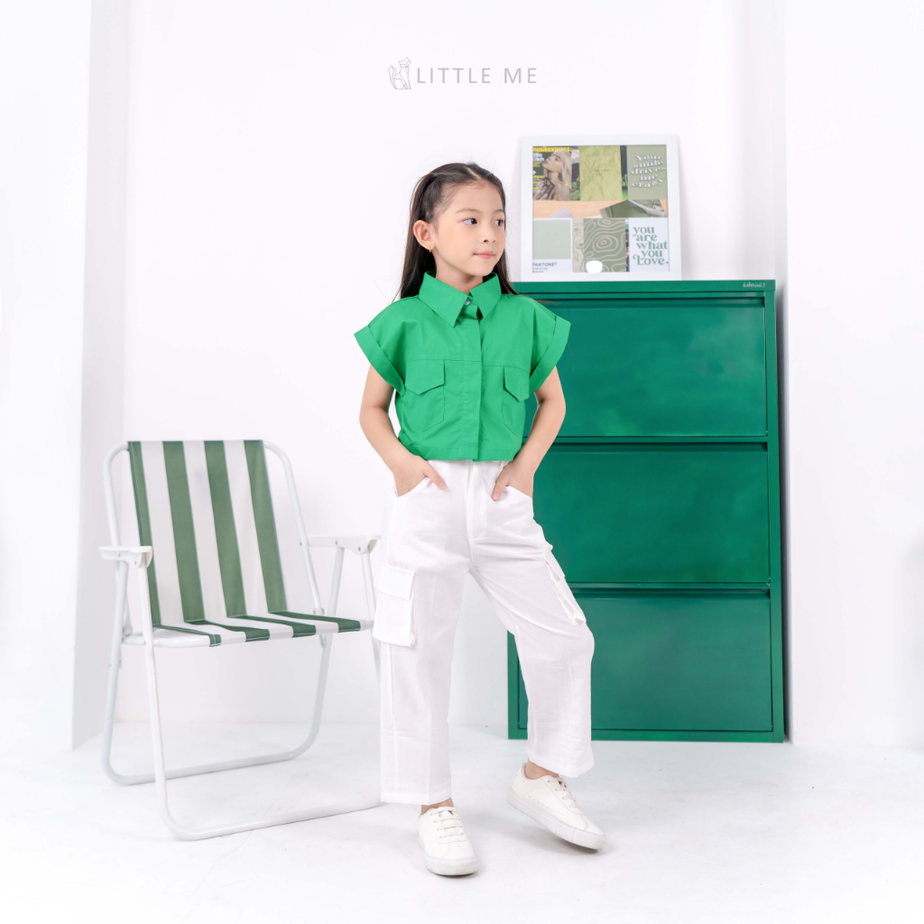 Little Me - Kemeja Anak Perempuan Lisa Crop Top usia 1 - 10 Tahun / Atasan Perempuan Model Crop Top