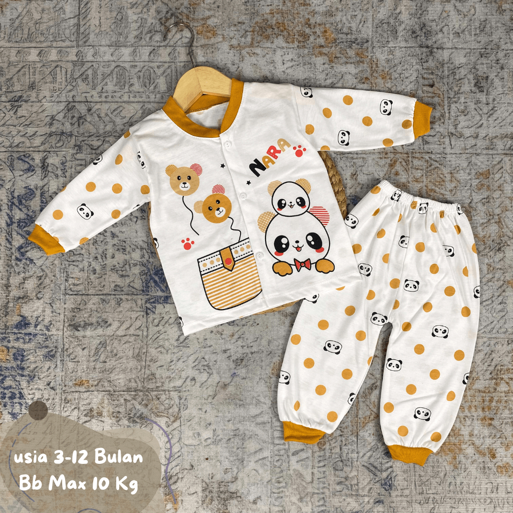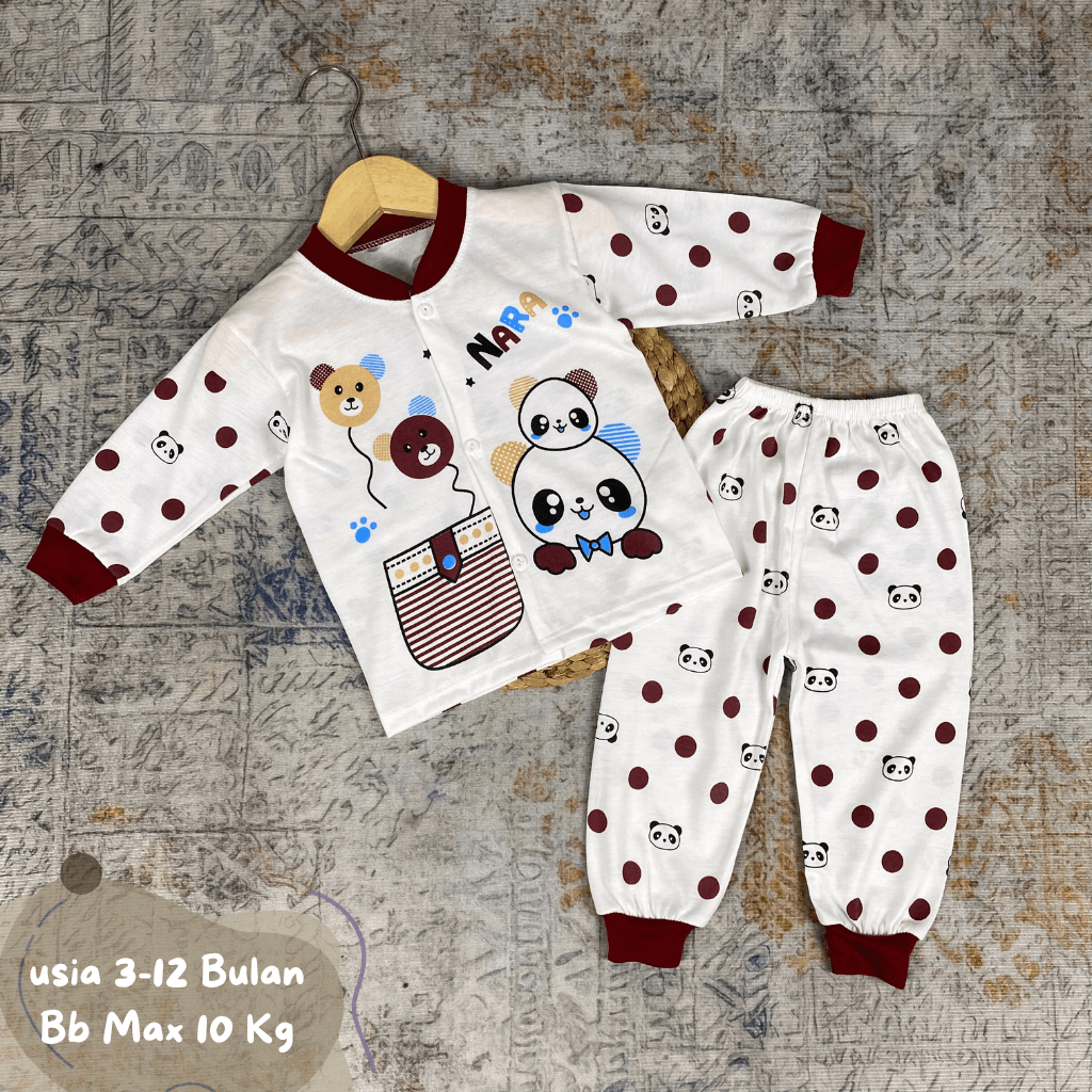 Baju Celana Setelan Piyama Bayi Kancing Depan Usia 3-12 Bulan Motif Baby Nara Baju Tidur Bayi 3-12 Bulan Meyriana Collec