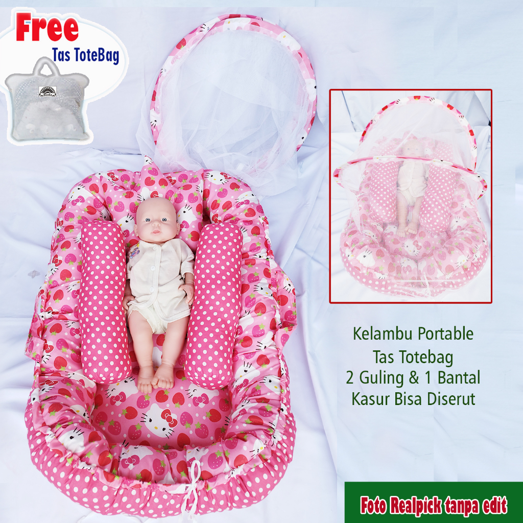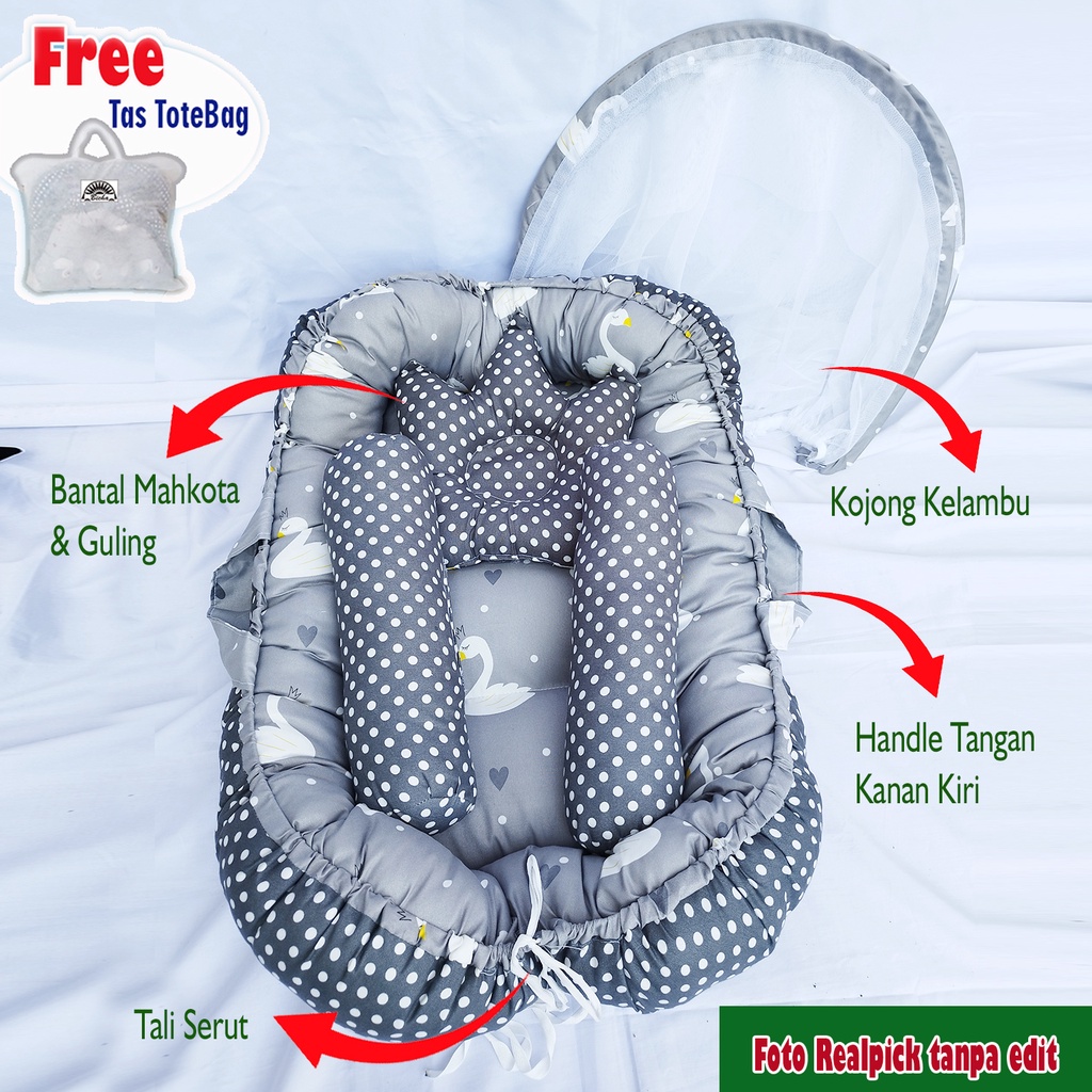 [FREE TAS TOTEBAG] KASUR BAYI BABY NEST PREMIUM DENGAN KELAMBU + FREE BANTAL PEYANG DAN GULING BAYI (BISA 2 SISI MOTIF B