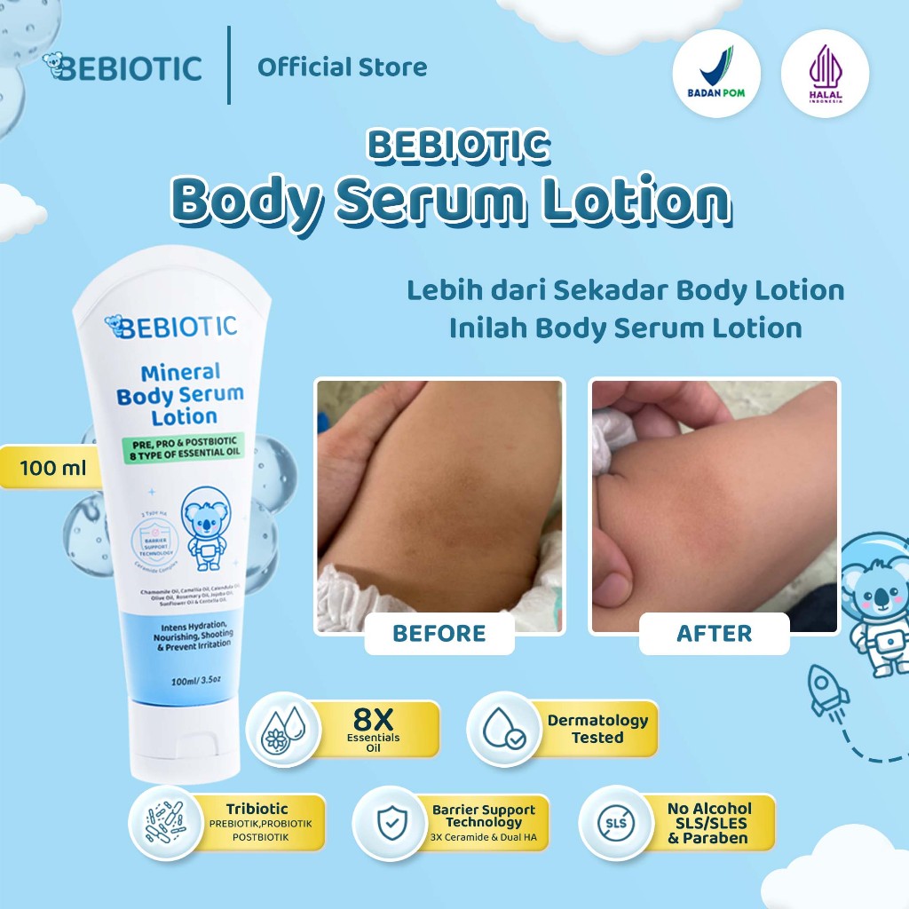 Bebiotic Mineral Body Serum Lotion 100ML - Body Lotion Bayi dengan Pre Pro dan Postbiotik & 8 Esential Oil untuk Menjaga