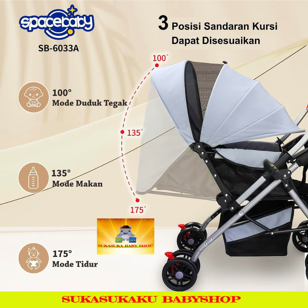 Stroller Baby SPACEBABY SB 6033A Dorongan Depan Belakang SPACE BABY Ukuran XL