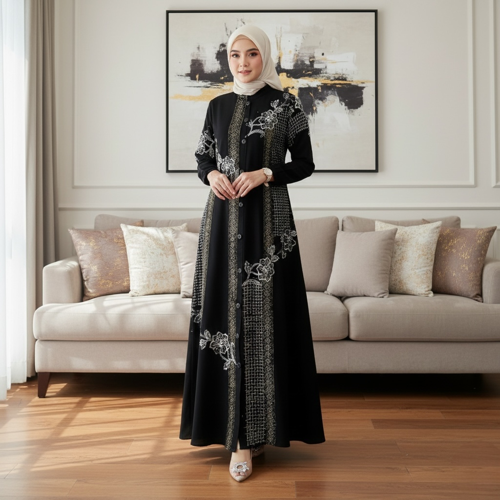 Batik Jihud - Gamis Cap Twill Rayon Terbaru Homedress Busui Kancing Jumbo Syar'i Premium