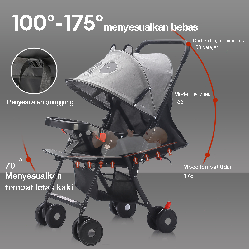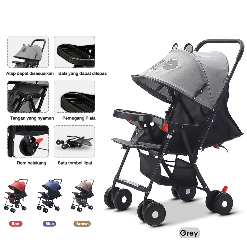 [Garansi 30 tahun] BEIGE Stroller Bayi Lipat Travelling Kereta Dorong Bayi 2 arah Batas beban 45KG