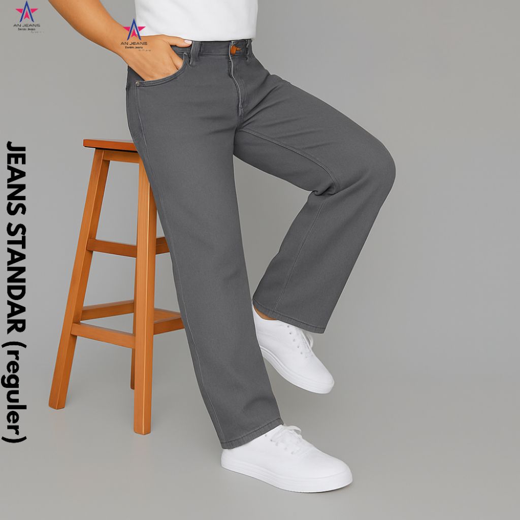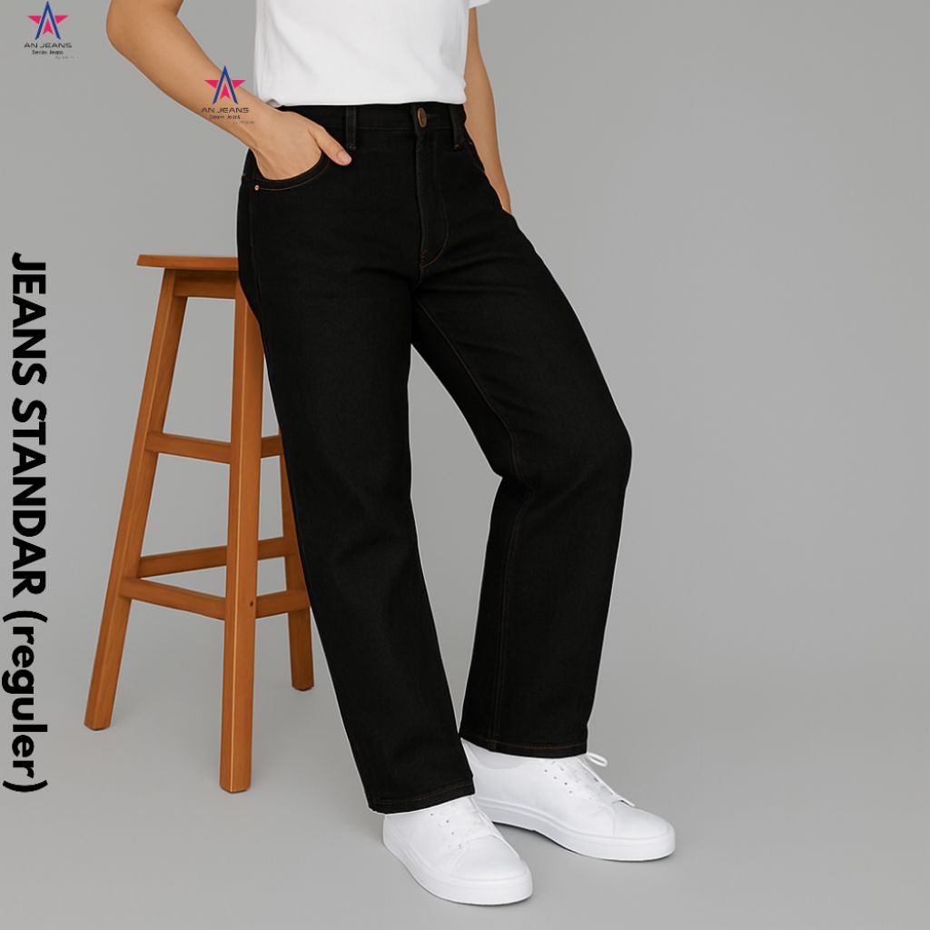 AN JEANS - Celana Jeans Reguler Pants Retro Basic Denim Celana Standar