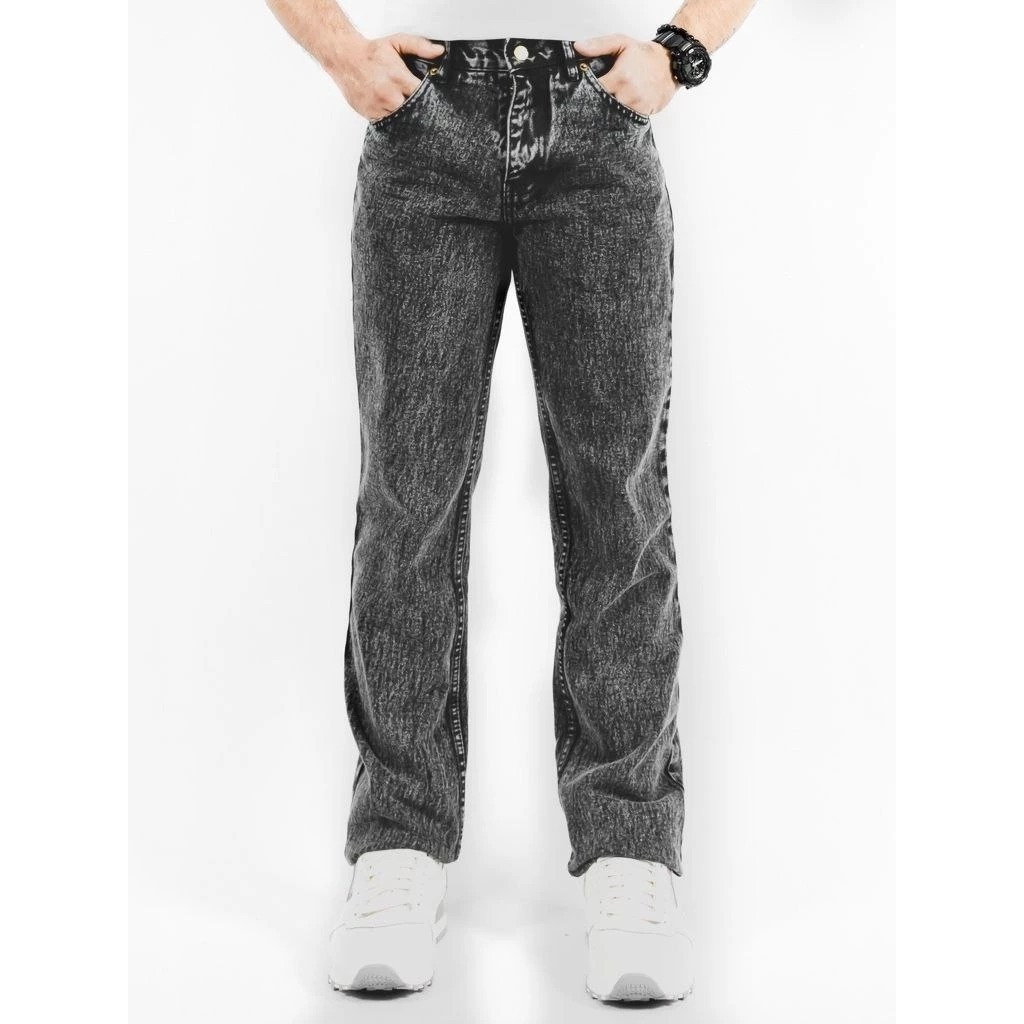 Celana Panjang Jeans Pria Standar Reguler Basic Warna Abu Grey Retro Mid Waist