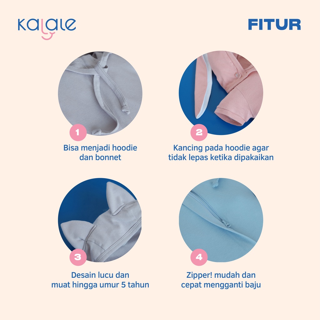 Kalale Baby Playsuit Zipper free Bonnet Animal (Romper / Jumper / Jumpsuit Anak dan Bayi)