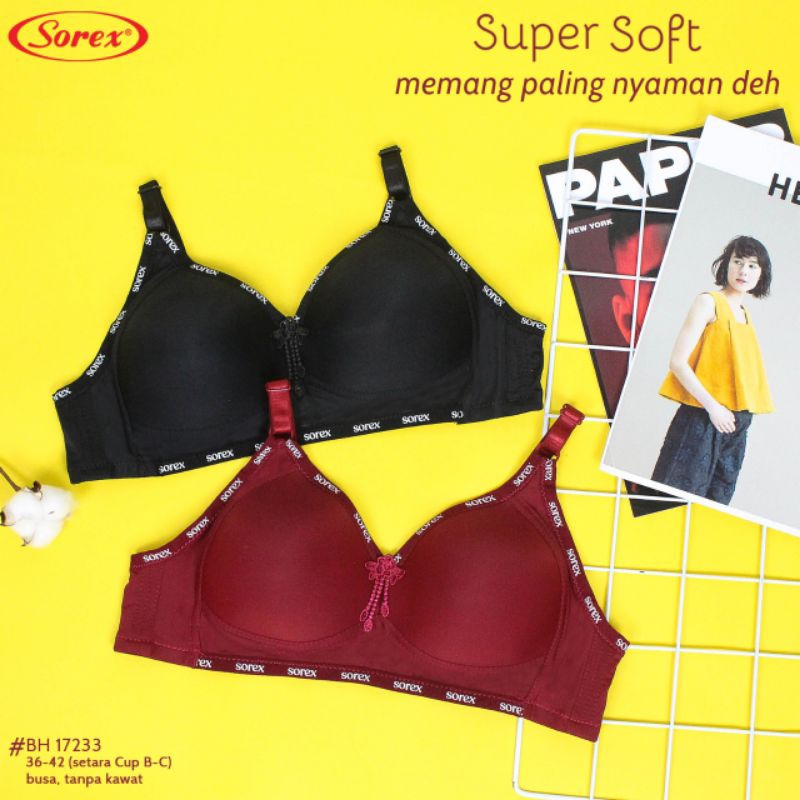 Grosir 3 Pcs Bra BH Sorex 17233 Cup Besar Setara B-C Kait 3 Tanpa Kawat