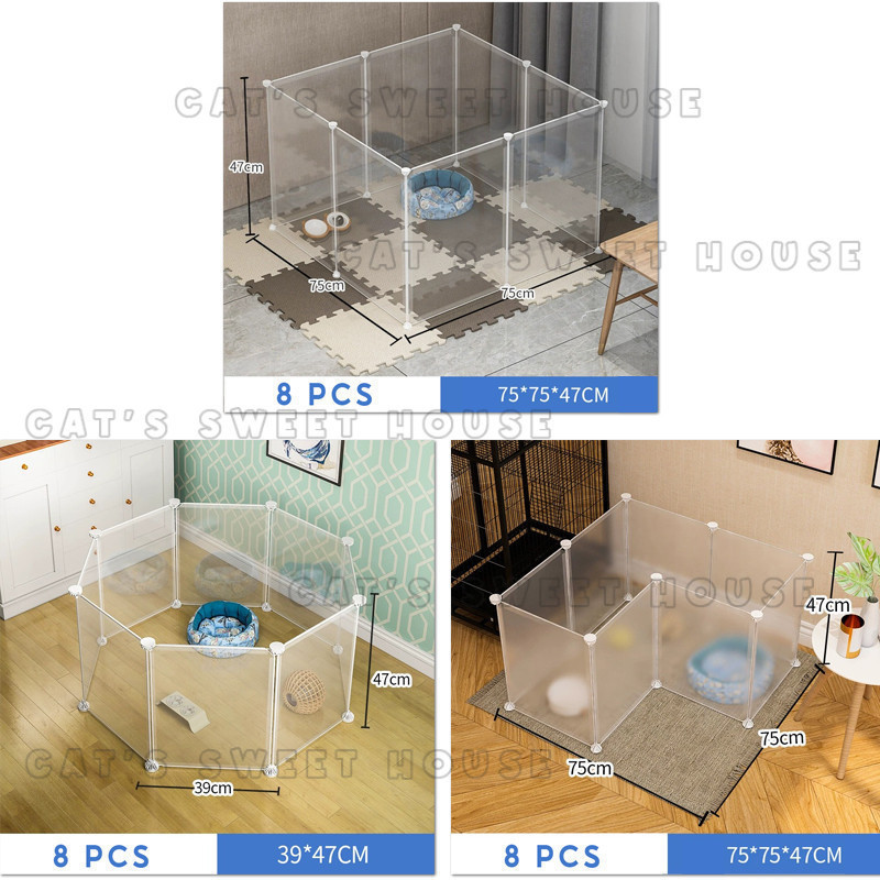 1 Set Kandang Kucing Transparan Kandang Hamster Pagar Kucing Pembatas Tingkat Kandang Rumah Kucing
