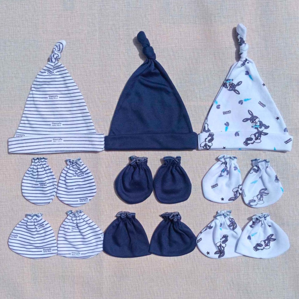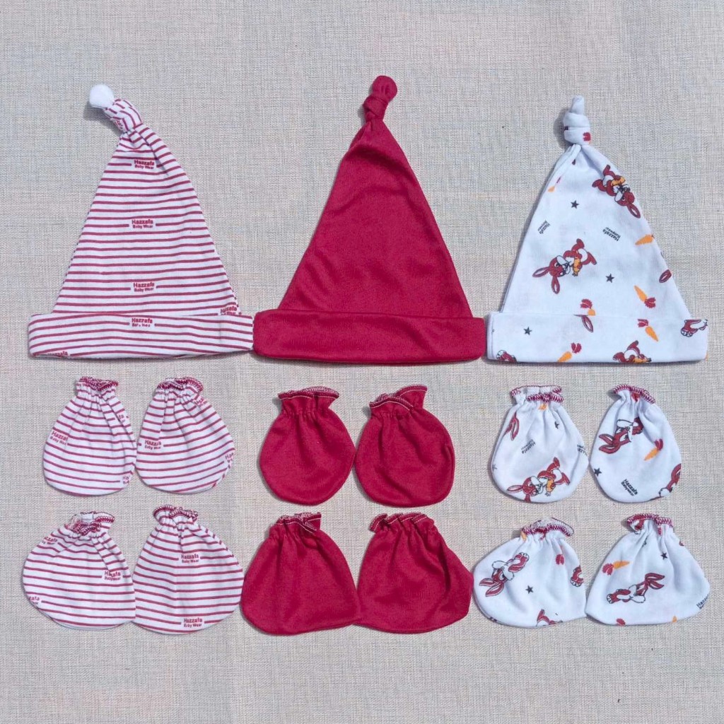 ISI 3 PCS Topi Dan 3 Set Sarung Tangan Kaki Bayi Baru Lahir Seri Warna Newborn