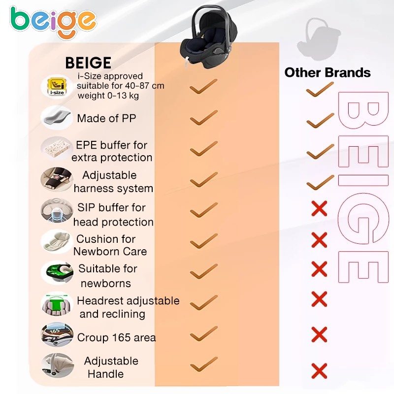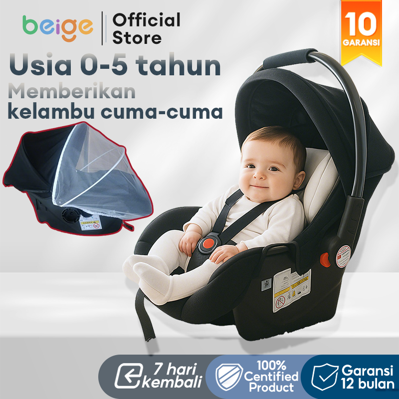 BEIGE Carseat Bayi Newborn 0-15kg | Kursi Mobil Bayi Portable Aman untuk Perjalanan & Travel