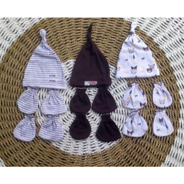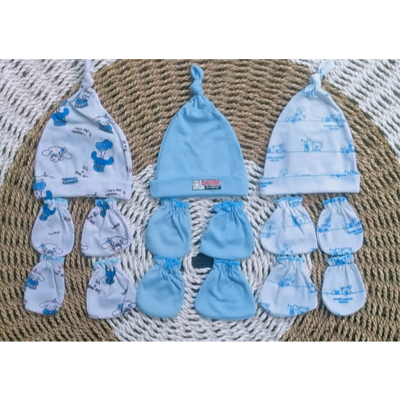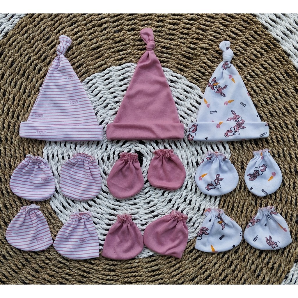 3 Set Topi dan Sarung Tangan Kaki Bayi Baru Lahir