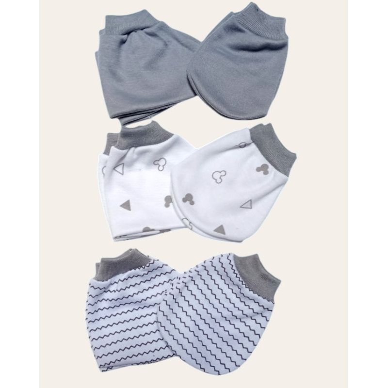 3pcs Sarung Tangan dan Kaki Bayi Warna Abu