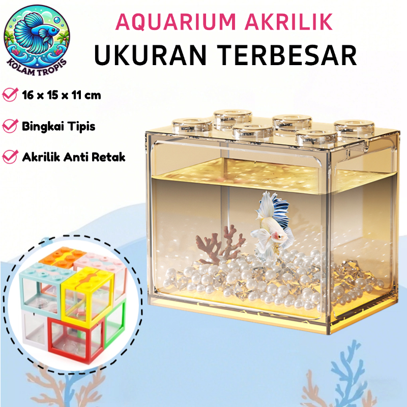 XXL Aquarium Akrilik 16x15x11cm Modular Aquarium Acrylic Cocok untuk Ikan Cupang & Guppy Besar