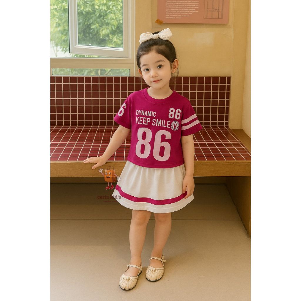 Setelan Anak Perempuan Motif Angka 86 Lucu Usia 0 Bulan- 6 Tahun Bahan Baby Terry Adem Terbaru
