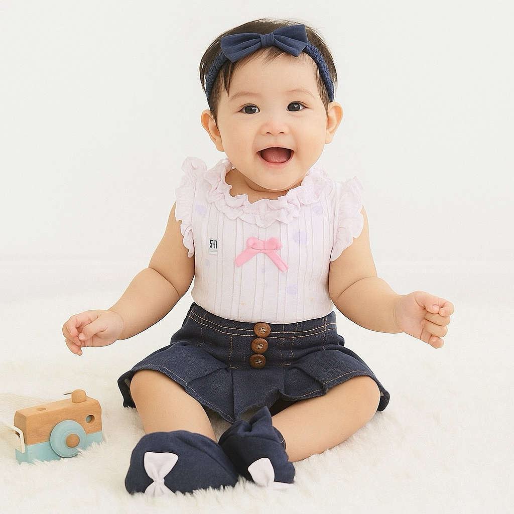 RENKIDSWEAR Aurel Girl Set ( free bando + sepatu) set newborn lucu katun 0-9 bulan baju bayi baju set bayi kado newborn