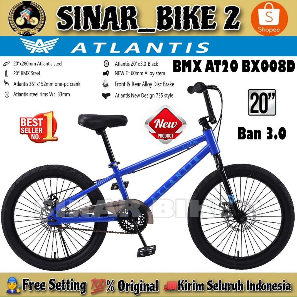 Sepeda Anak Laki BMX ATLANTIS AT BX 008 DB CAKRAM Ban Jumbo 3.0 Rem Cakram Ukuran 20 Inch Usia 8-11 Tahun