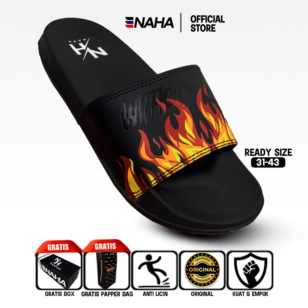 NAHA - Sandal Slop Pria Distro Wanita Karet Api Hitam Size 31 - 43