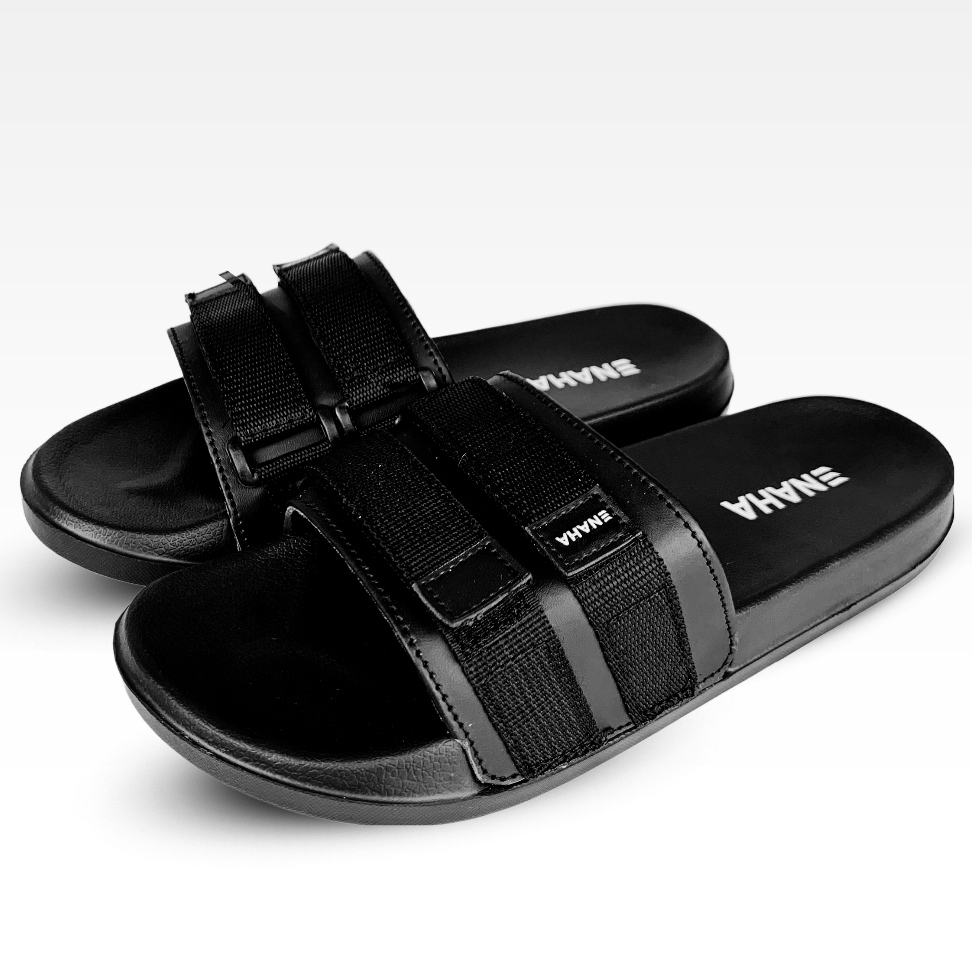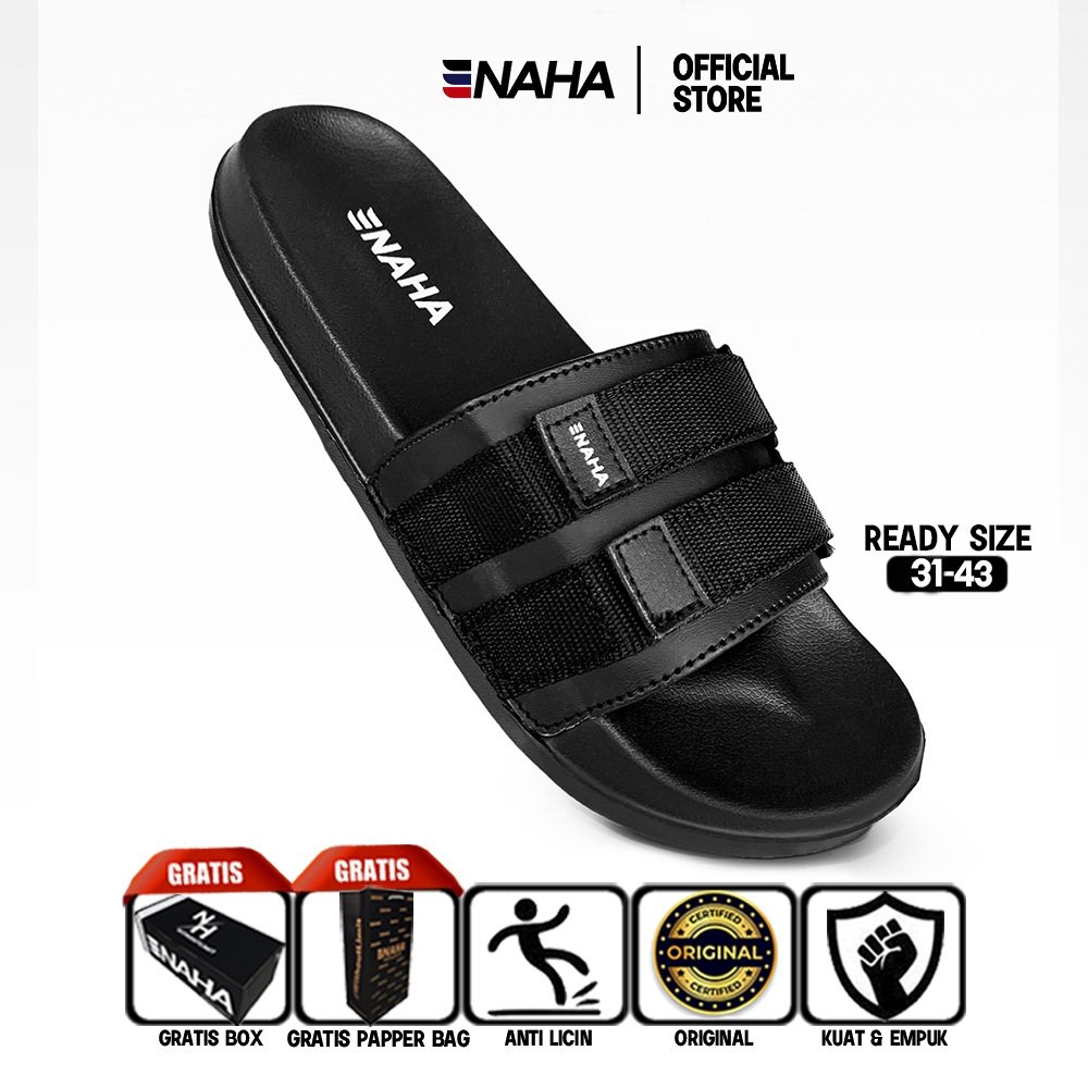 NAHA - Sandal Slop Karet Pria Wanita Web Hitam Distro Size 31-43