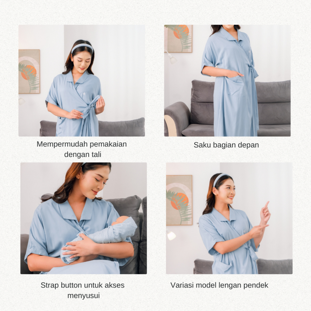 Momiasi – Yuki Home Dress Kimono Lengan Pendek – Daster Busui Lahiran Friendly- Maternity Hospital Kimono Rayon