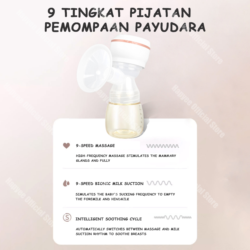 HAPYEE Pompa Asi Electric Portable Tanpa Rasa Sakit Painless Rechargeable Single Electric Breast Pump BPA Free