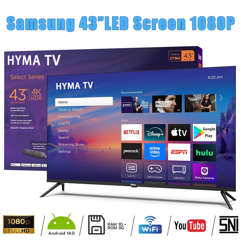 HYMA Samrt TV 43" Samsung LED 4K 1080P UHD Smart Google TV, Voice Remote with Alexa, Wide Color Gamut, HDR10+, Dolby Vision, Dolby Atmos, Game Mode, ALLM,Android Smart TV