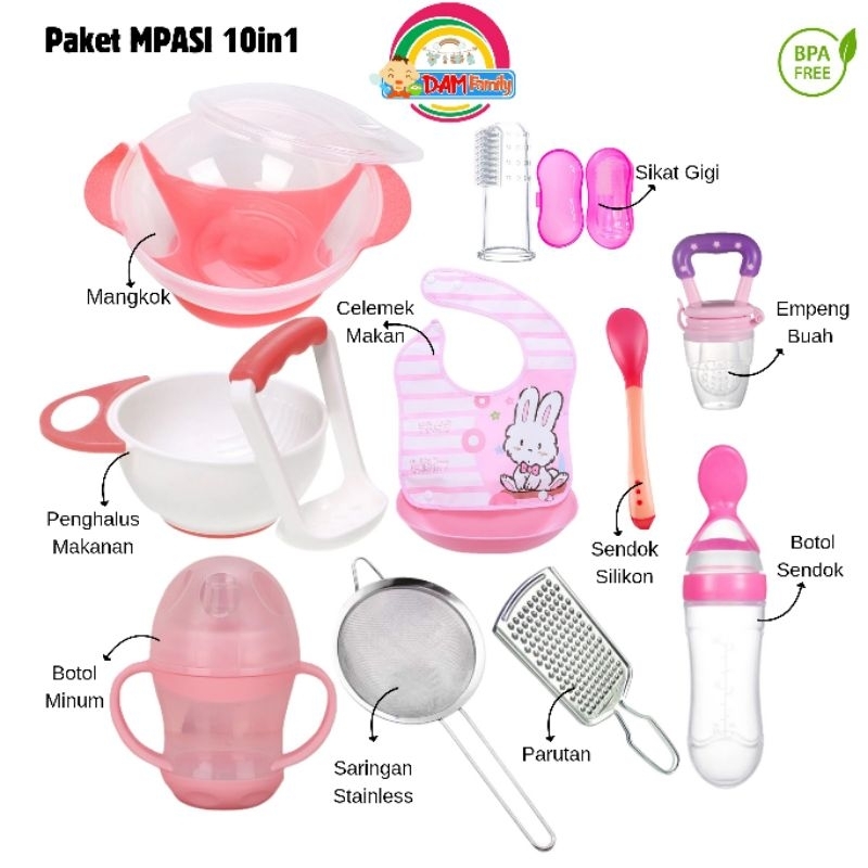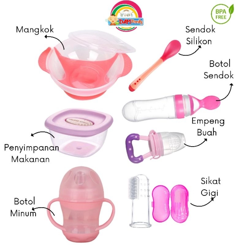 DMP-all Paket Alat MPASI Set Alat Makan Mangkok Sendok Bayi Empeng Buah Botol Minum Celemek Makan Saringan Parutan Baby