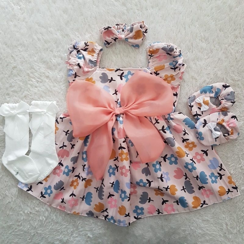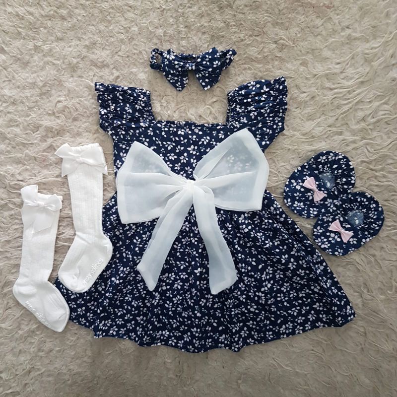 Little Flower Bonnet Set Dress Bayi Katun Bunga-Bunga