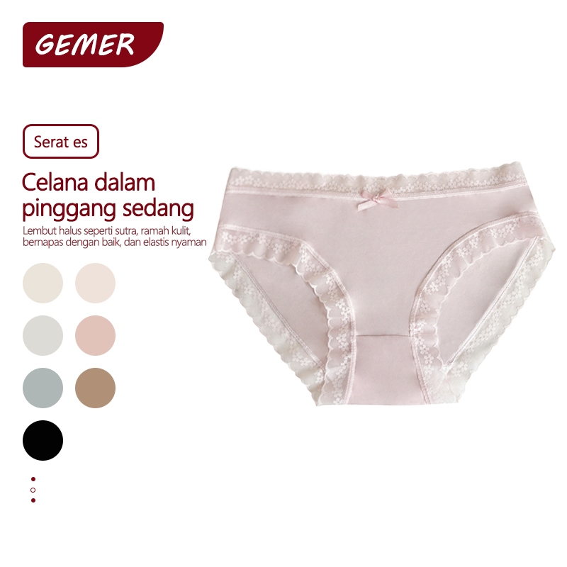 GEMER 7 Pcs Celana Dalam Wanita Seamless Pinggang Tengah Sutra Es, Selangkangan Katun Murni, Celana Ramah Kulit