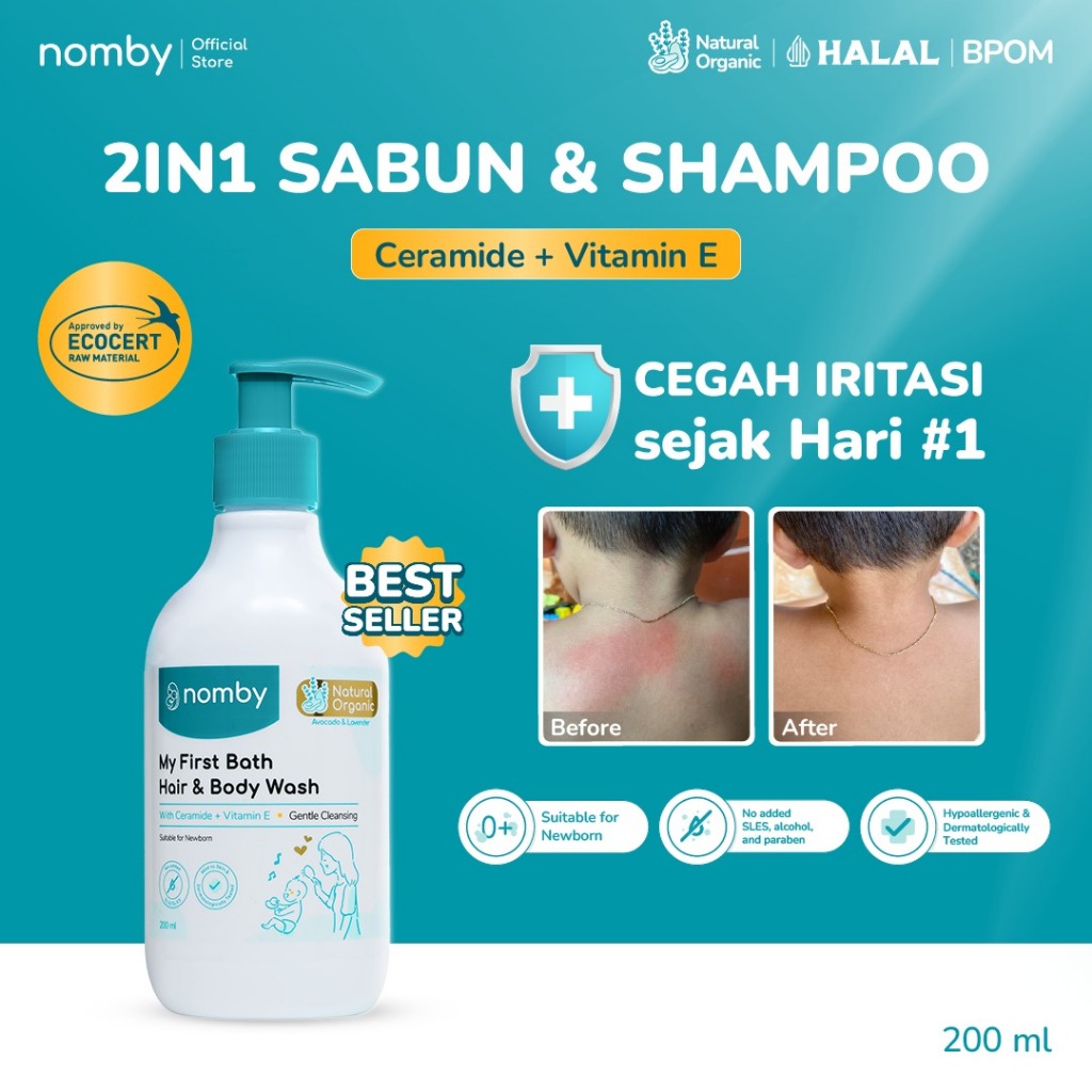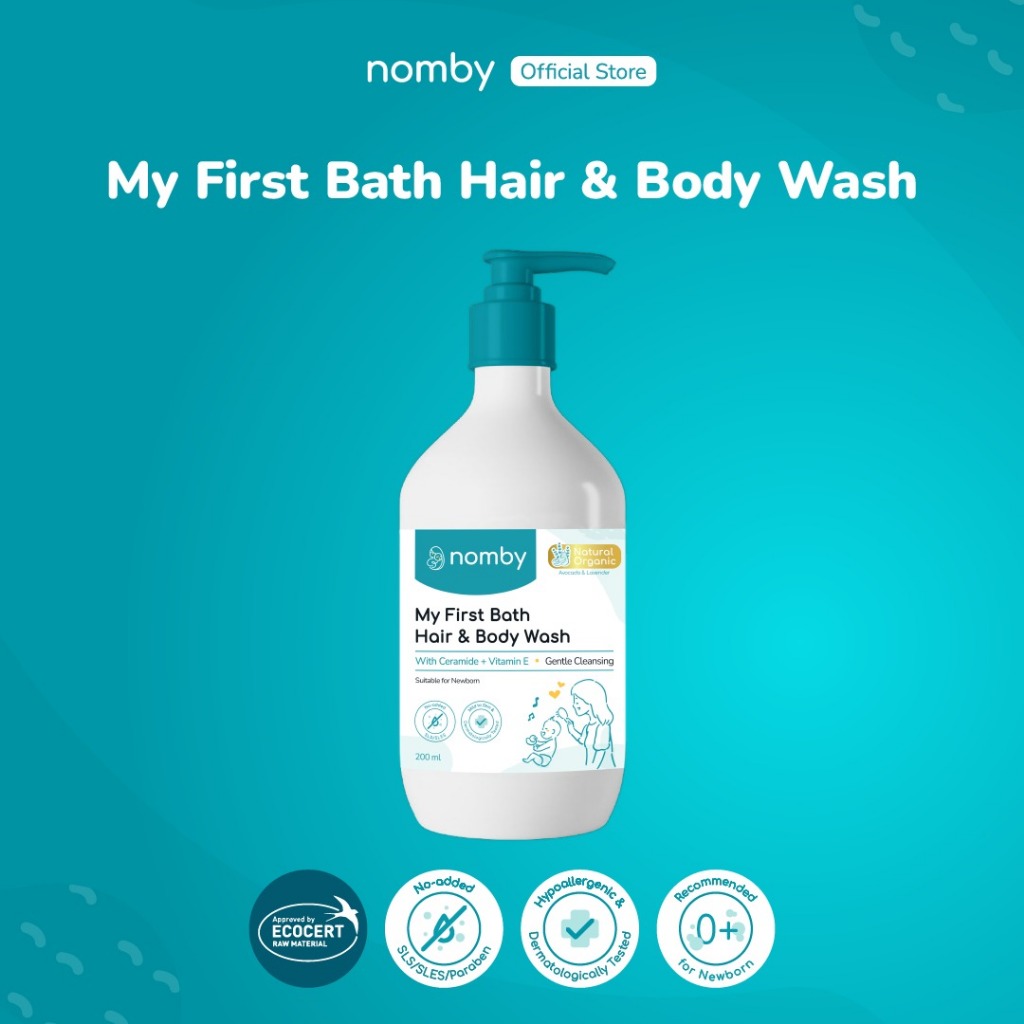 nomby My First Bath Hair & Body Wash 200 mL - Sabun Bayi/Newborn Natural Organik Cegah Iritasi With Ceramide + Vitamin E