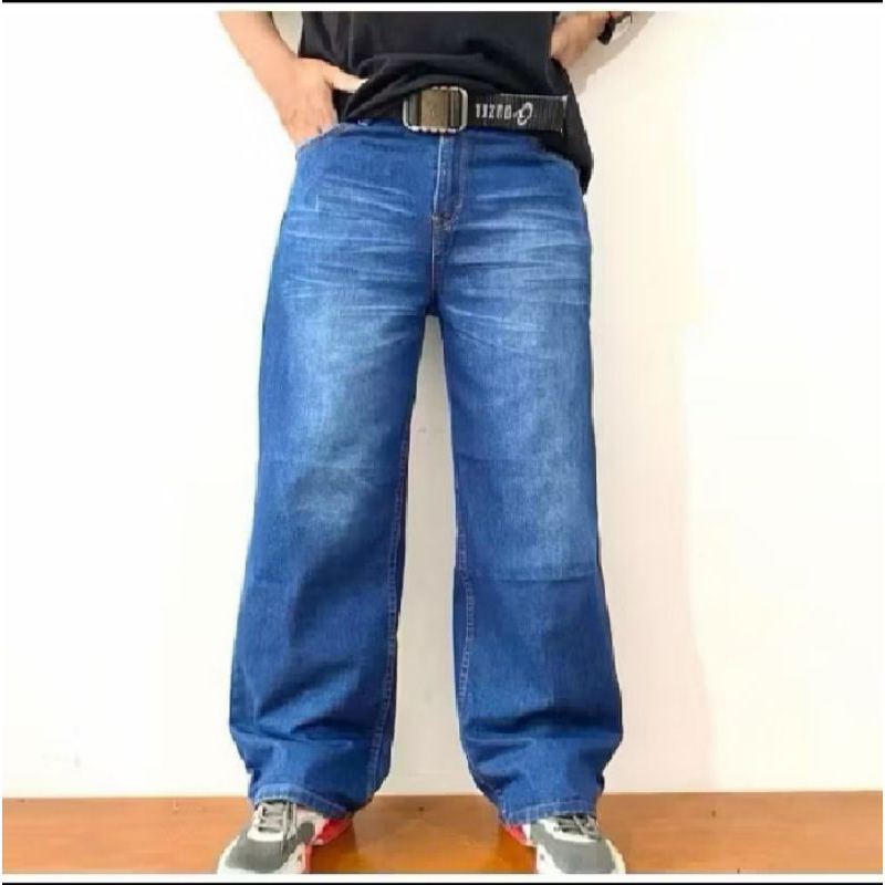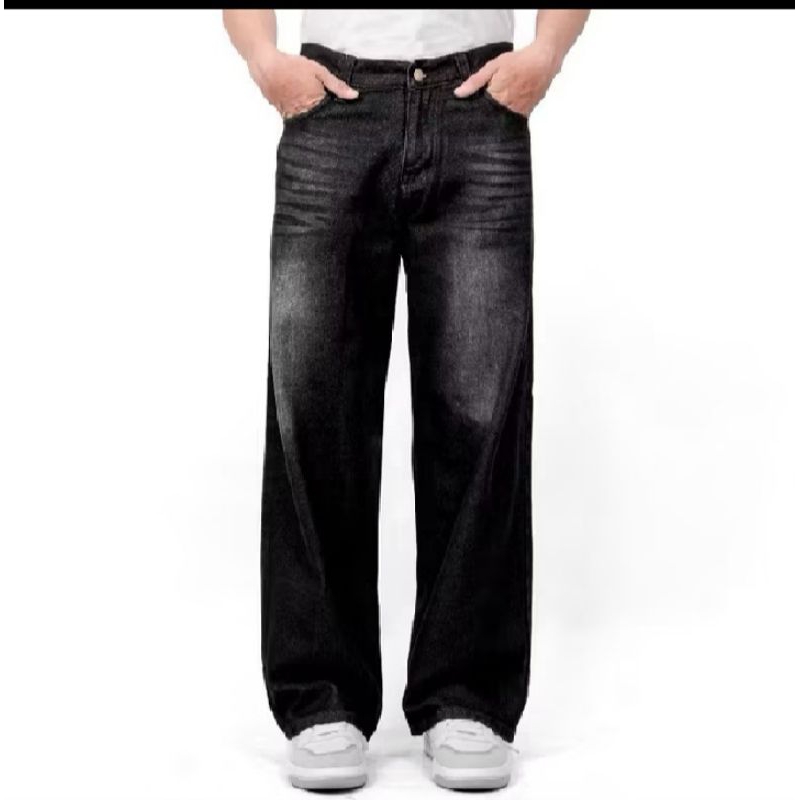 Celana loose pants Skena gombrong jeans pria denim hitam biru abu abu