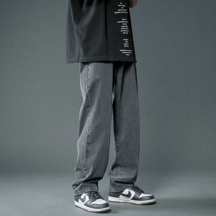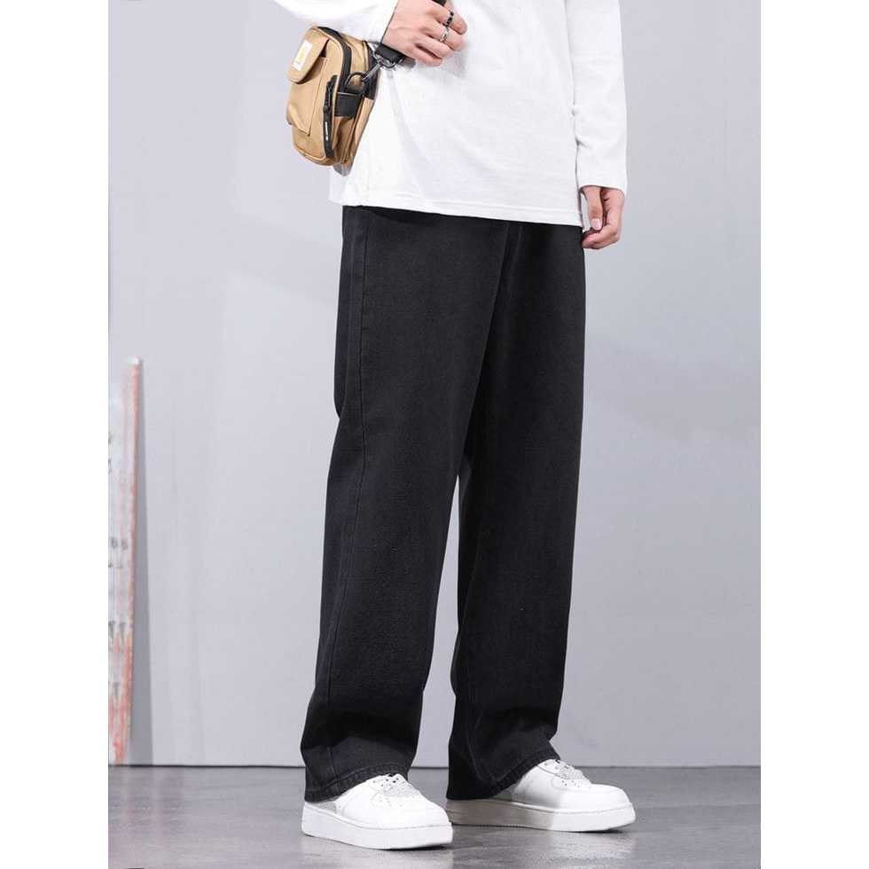 Celana jeans Pria panjang Standard Model Reguler Lurus Longgar Denim Grey Retro
